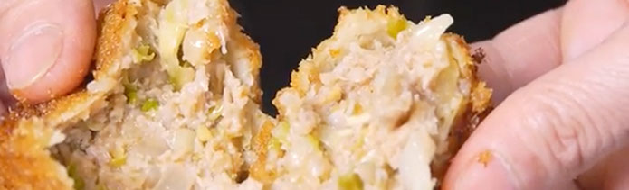 お店一番人気の商品は、他では見られない球状の形をした「キャベツメンチ」。