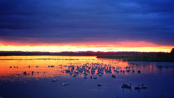 古川からは車でおよそ45分です。沢山のマガンやハクチョウが飛来しているこの時期に、伊豆沼・内沼へお出かけくださいね。(※住所 宮城県栗原市若柳字上畑岡敷味17番地の2)