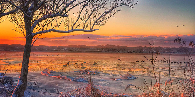 地元のフォトグラファー 小出一郎さんが、スマートフォンで撮影した伊豆沼の写真です。カメラでなくても、スマートフォンでこんなに素敵な写真を撮ることができるんですね♪ この冬、スマホ片手に素敵な写真を撮りに出かけてみてはいかがでしょうか。