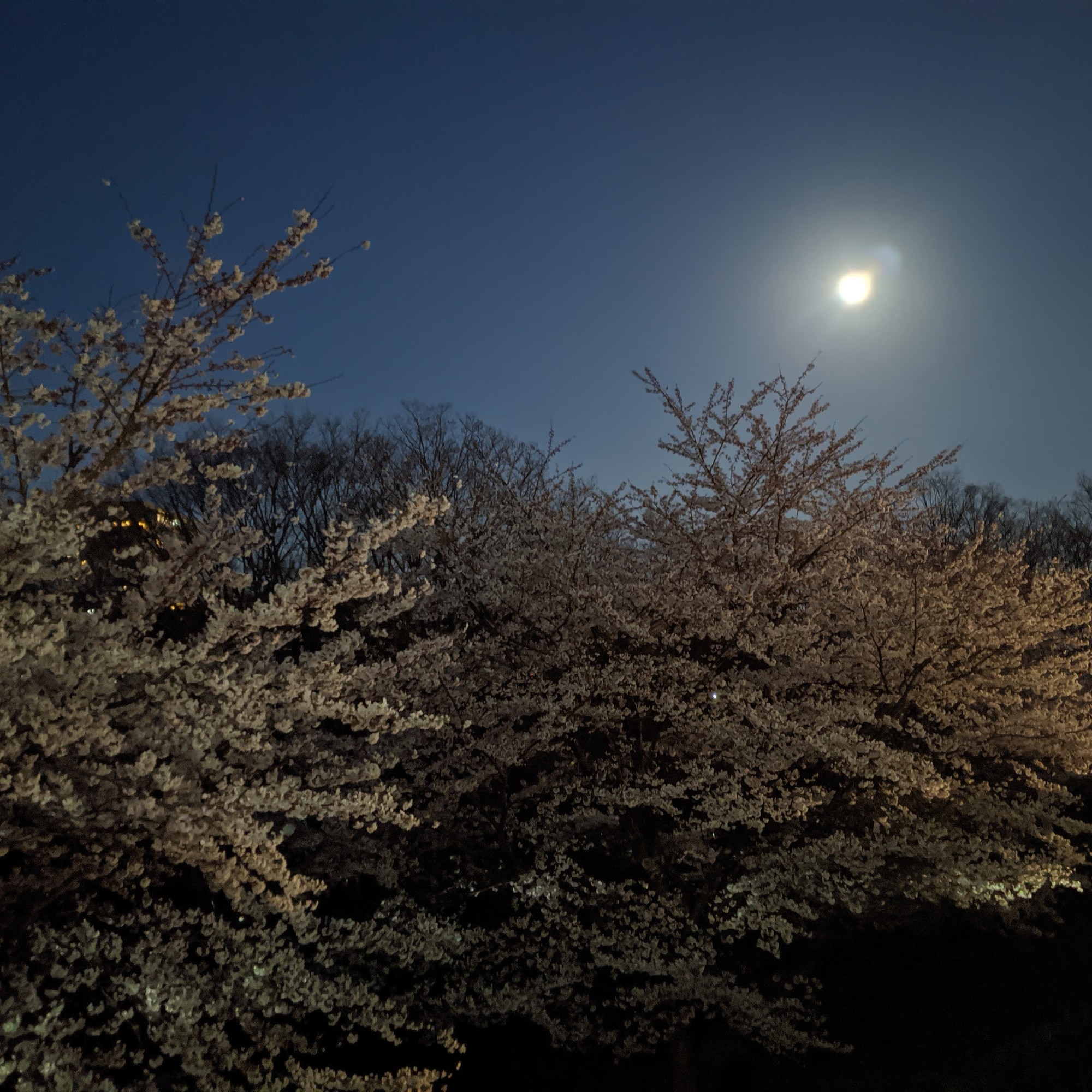 大崎市のあなたも見ていましたか?スーパームーン。月の光に映える夜桜。
