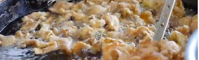一口サイズに切ったとり皮を、カリカリの状態に揚げ、冷めないうちに2種類の自家製タレにからめ仕上げます。