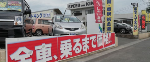 スピードキングさんでは、中古車総合サービス工場として、中古車販売、修理・鈑金・塗装など自動車にかかわる全ての業務を行っております。