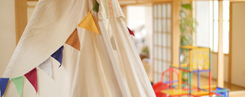押入れにはお昼寝用の布団が敷かれていたり、テントらしきものが吊るされてあったり、子供の頃を思い出し懐かしくなりました。