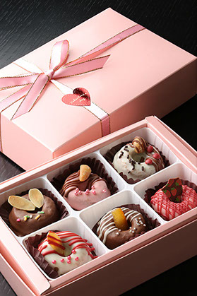 「洋菓子で笑顔を」をモットーに、こだわりのパティシエがご用意している商品は、毎年予約殺到の『チョコタルト』を筆頭に、バレンタイン限定の商品『生チョコ』。カラフルでコロコロした可愛い『チョコドーナッツ』に『生チョコレートケーキ』とスポンジを2種類のムースでサンドした『バレンタインカップ』。