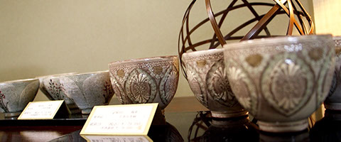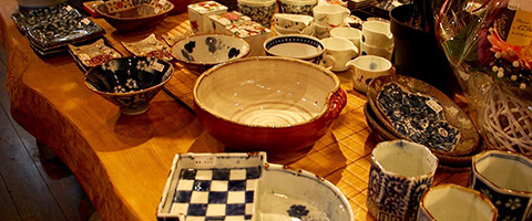 100年前の陶器の復刻版。色も形も100年前と同じに再現した、和テイストの洋食器。見とれてしまいます。