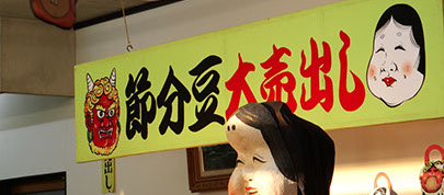 節分には欠かせない豆菓子・恵方巻きを提供している
