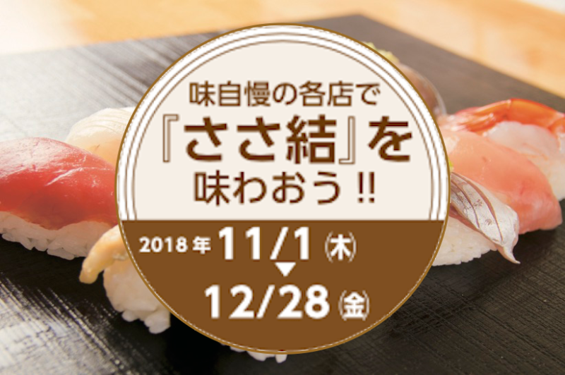 大崎寿司業組合に加盟する大崎市内「13店」において、フェア期間中、週に1回〜2回程度「ささ結」を使ったお寿司を提供いたします。提供日や営業時間などにつきましては、参加加盟店にお問い合わせください。